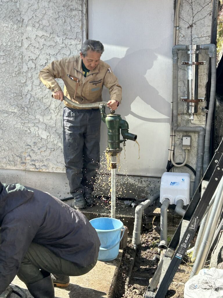 地面を掘る作業をしている最中から、これはきっとよいお水が出るに違いないと思っていたのですが、本当によいお水が出ました。